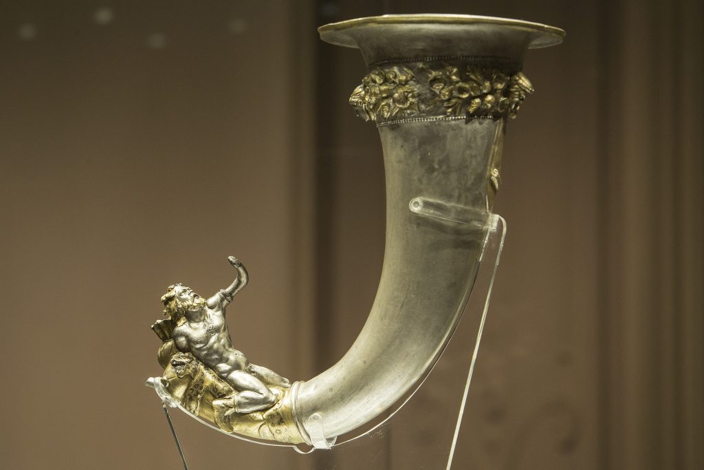 Сребърен ритон с фигура на възлегнал Силен, кр. III – нач. на II в. пр. Хр.